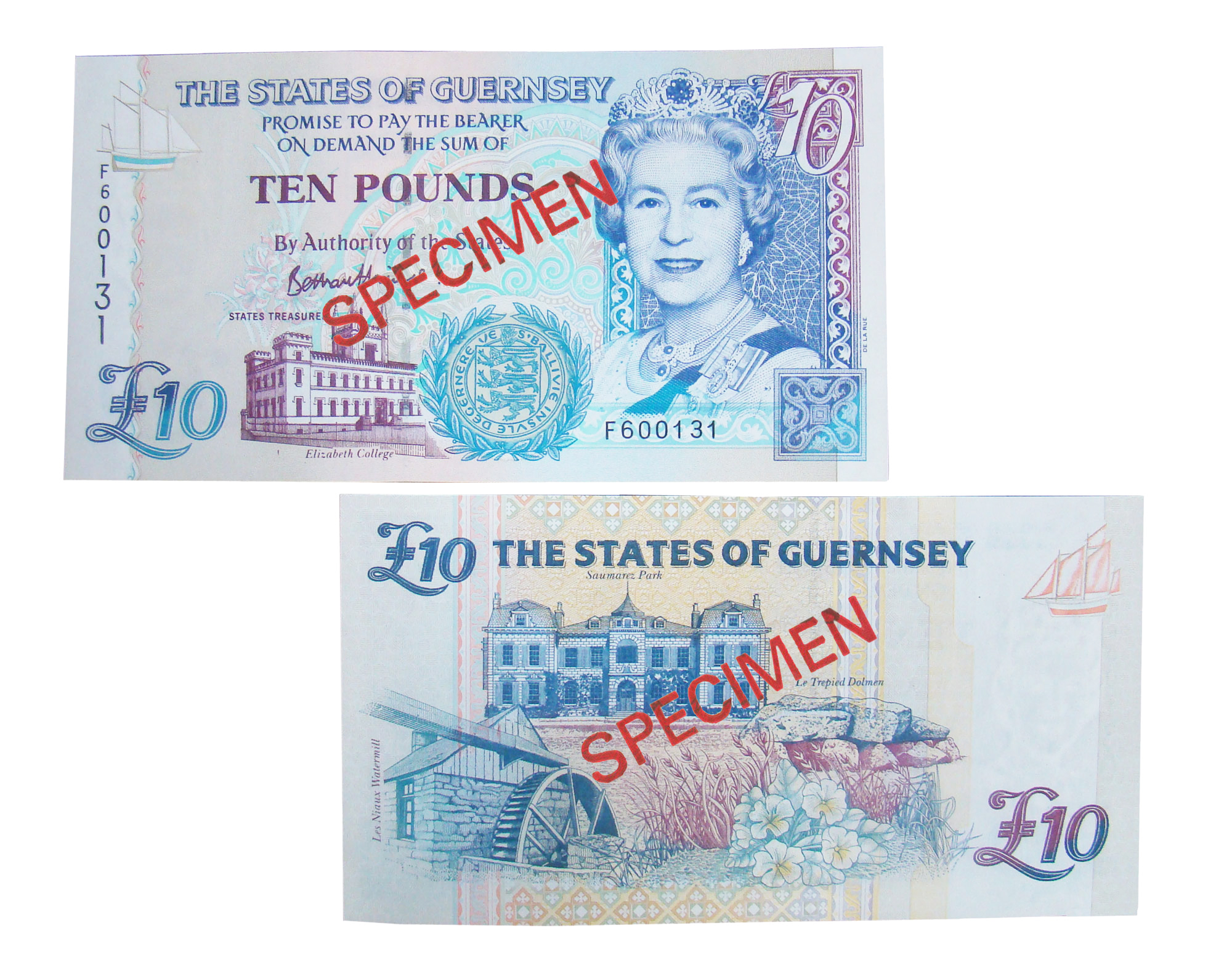 As well as Her Majesty The Queen, this note includes illustrations of Elizabeth College, Saumarez Park and Les Niaux Water Mill. They have been designed and printed by De La Rue Currency, a company started by Guernseyman Thomas De La Rue in the 19th Century.