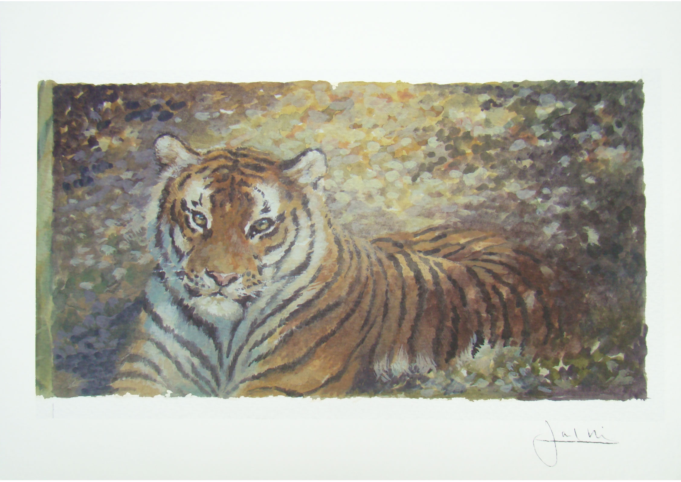 Joel Kirk Print - Bengal Tiger in brown leaves