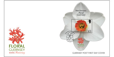 In celebration of Floral Guernsey's 20th anniversary we are delighted to depict a unique image on our miniature sheet, the Floral Guernsey flower, which is a new daffodil especially bred by horticulturalist Rae Beckwith.