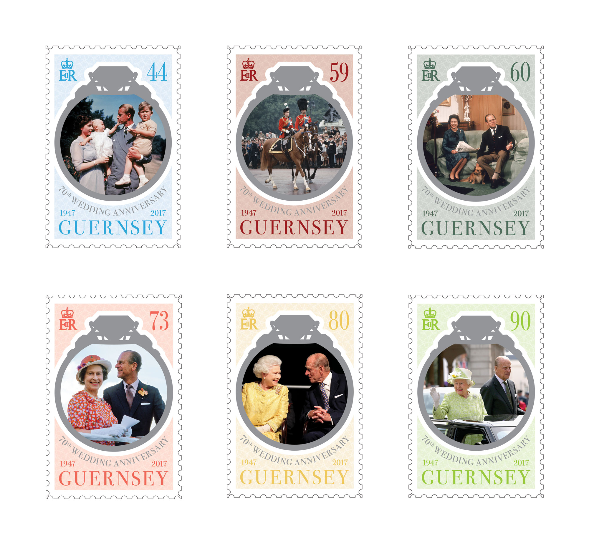 70th Wedding Anniversary of The Queen and Prince Philip / Set of 6 Stamps