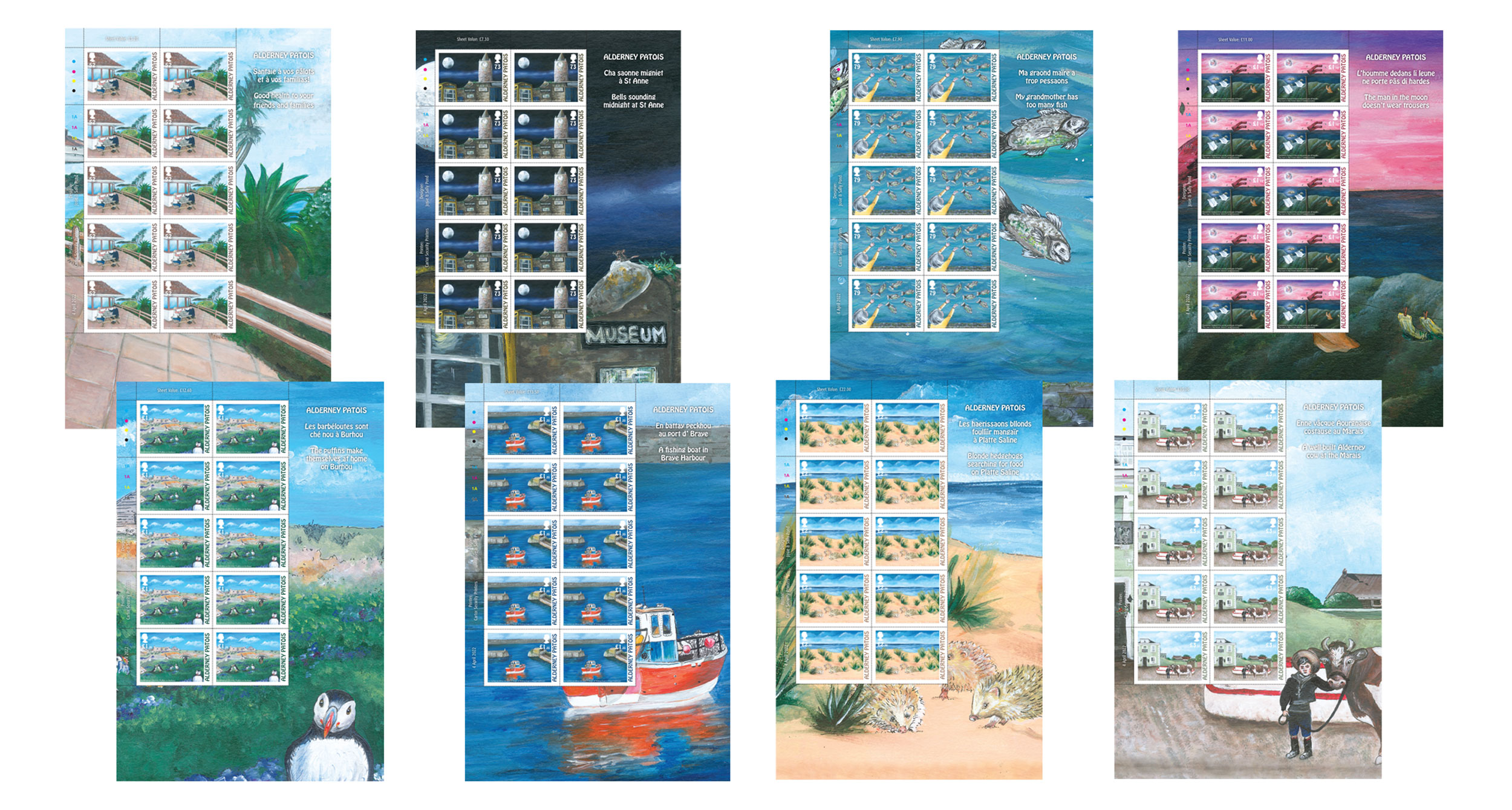 Some of our stamp issues are produced in sheets of ten. This enables collectors to obtain cost-effective sheets of each value with the name of the designer, printer and printer’s information and ‘traffic lights’.