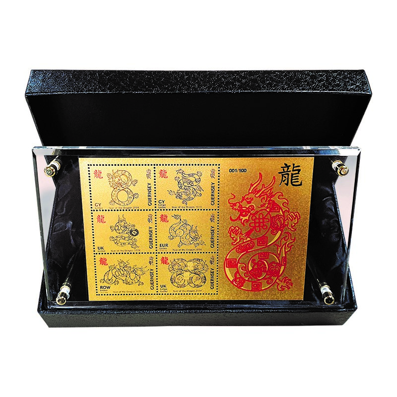 The Gold Foil Souvenir sheet is produced in 24 carat gold (99.9% pure), mounted inside an acrylic display stand and presented in a branded black presentation case. The gold sheet is number and a certificate of authenticity is included.