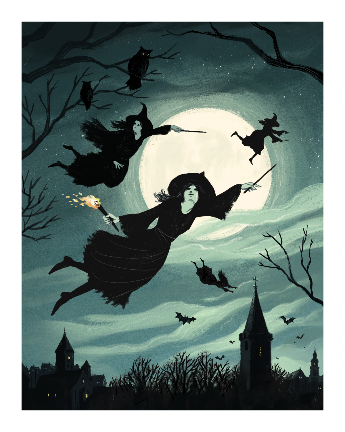 Guernsey Witches A4 Giclee Prints / Guernsey Witches flying home after Le Sabbat 10 x 8 Giclee Print