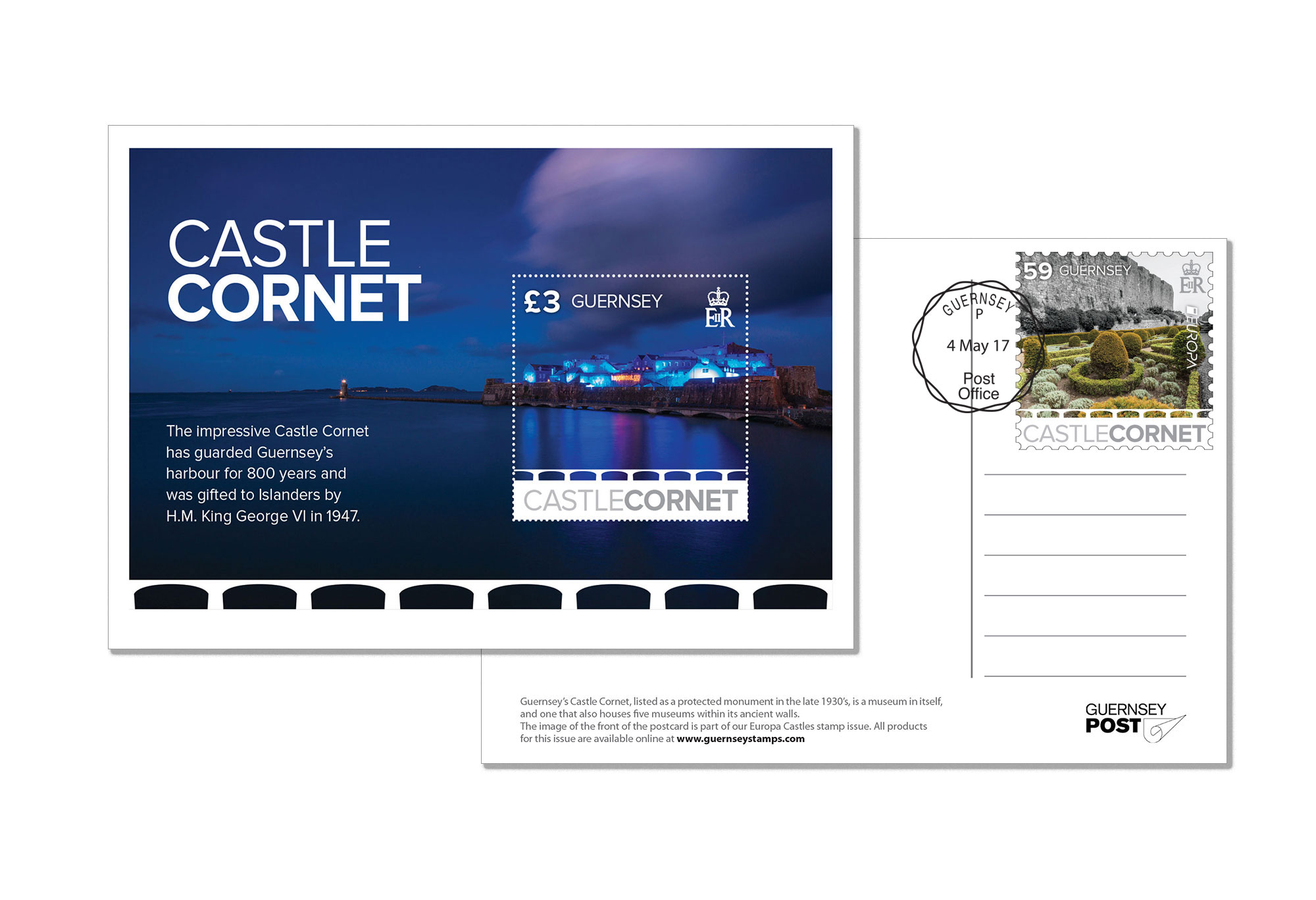 A traditional postcard with the UK stamp, cancelled on the reverse of the postcard.