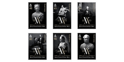 When researching the imagery to feature on the stamps, we discovered that the first photographic portrait of Prince Albert dates from 1842, while the earliest photograph of Queen Victoria (a double portrait with the Princess Royal) was taken by the painter Henry Collen around 1844,