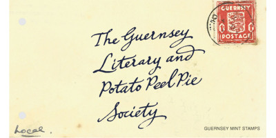 The second stamp (45p) shows a bookshelf containing some of the many titles enjoyed by the Literary Society. Through these books, the group is able to 'almost forget, now and then, the darkness outside' (letter from Amelia to Juliet).