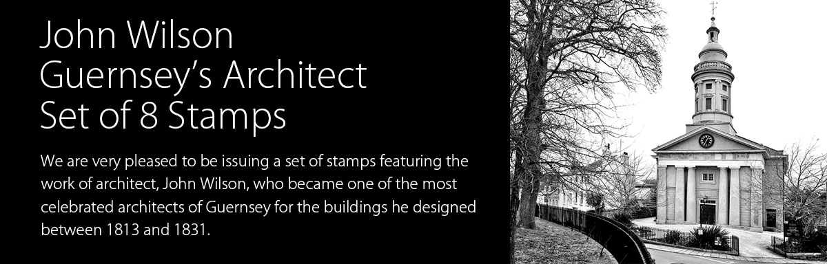 We are pleased to be issuing a set of stamps featuring the work of architect, John Wilson. He was a Clerk of Works for the Board of Ordnance who became one of the most celebrated architects of Guernsey for the buildings he designed between 1813 and 1831.