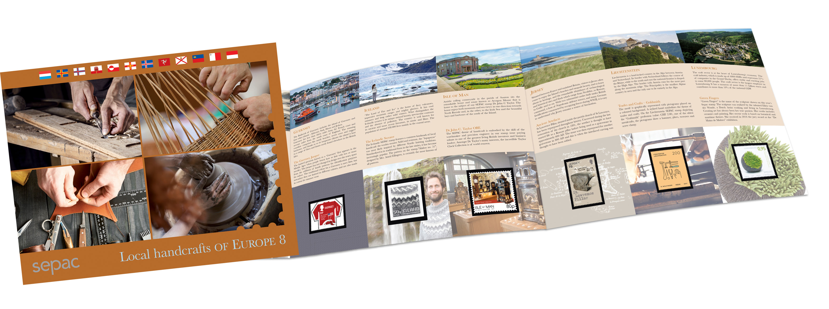 The stamps featured in the eight edition of the special folder entitled ‘Local Handcrafts of Europe 8’ contain stamps from the participating postal administrations of Åland, Faroe Islands, Gibraltar, Greenland, Guernsey, Iceland, Isle of Man, Jersey, Liechtenstein, Luxembourg, Malta and Monaco. All the stamps bear the official SEPAC logo.