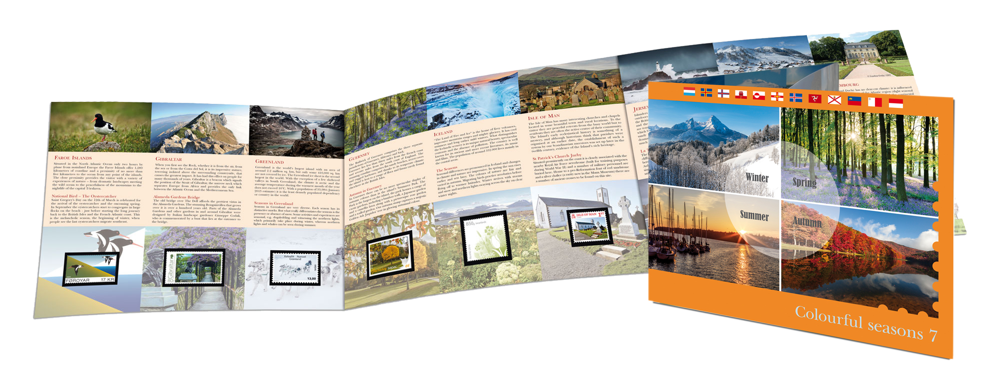 The new stamps are available in a joint folder entitled 'Colourful Seasonss of Europe 7'. The folder holds 12 stamps from each participating postal administration.