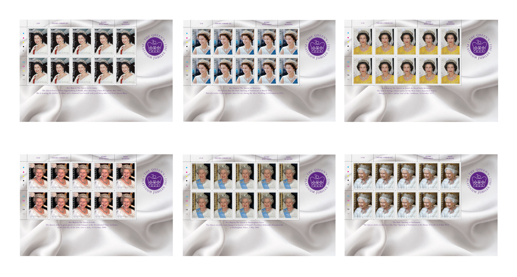 Some of our stamp issues are produced in sheets of ten. This enables collectors to obtain cost-effective sheets of each value with the name of the designer, printer and printer’s information and ‘traffic lights’.
