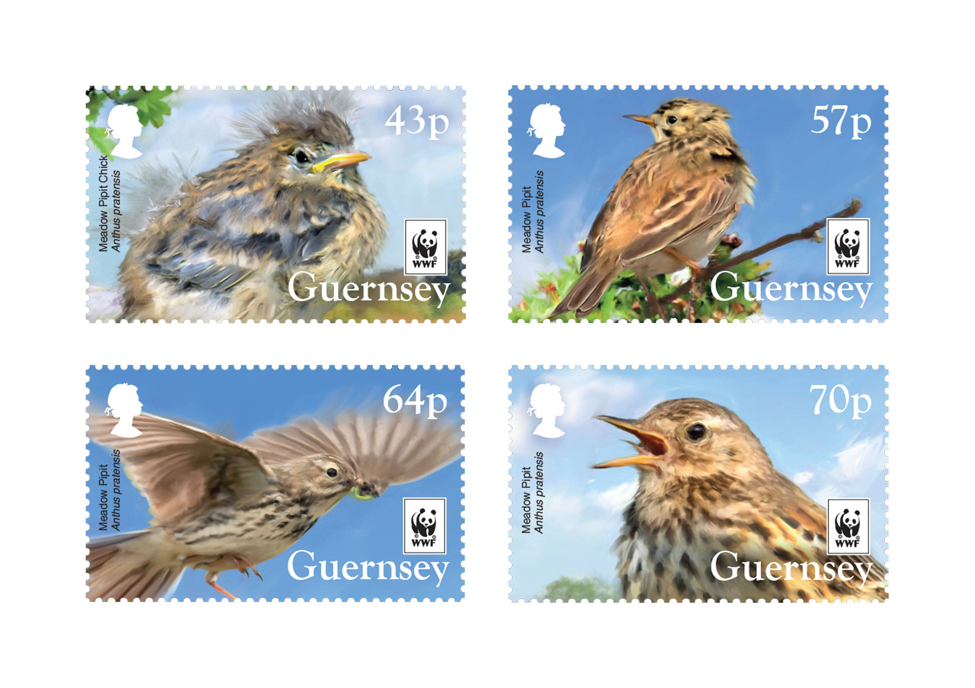 WWF Endangered Species Meadow Pipit / Set of 4 Stamps