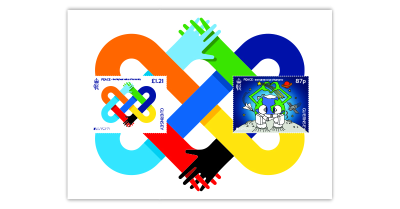 This Europa Mini Sheet contains the two stamps that carry the Europa logo.