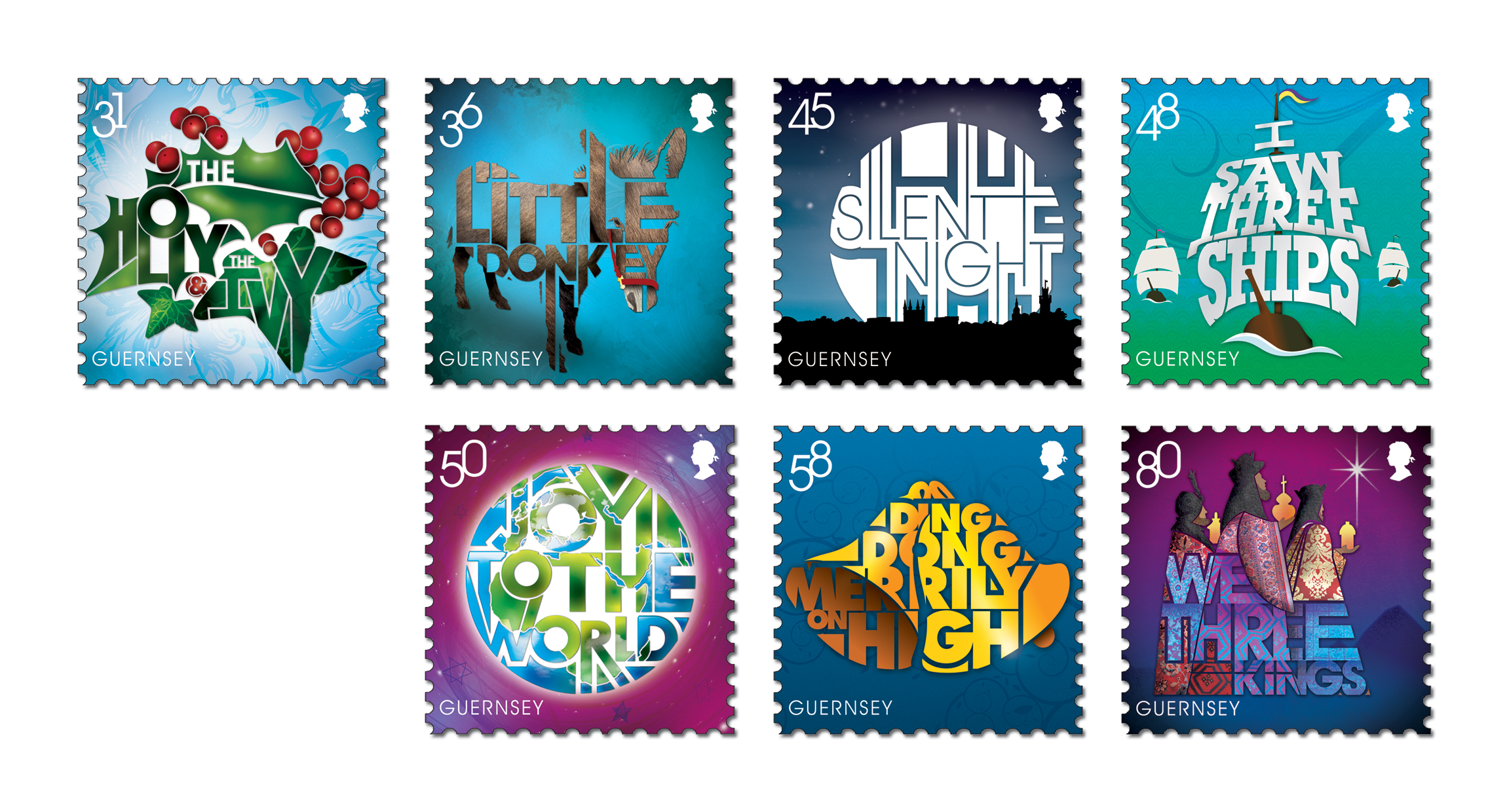 Our Guernsey Christmas Carols stamp issue features seven popular Christmas carols represented graphically with clever and contemporary use of typography.