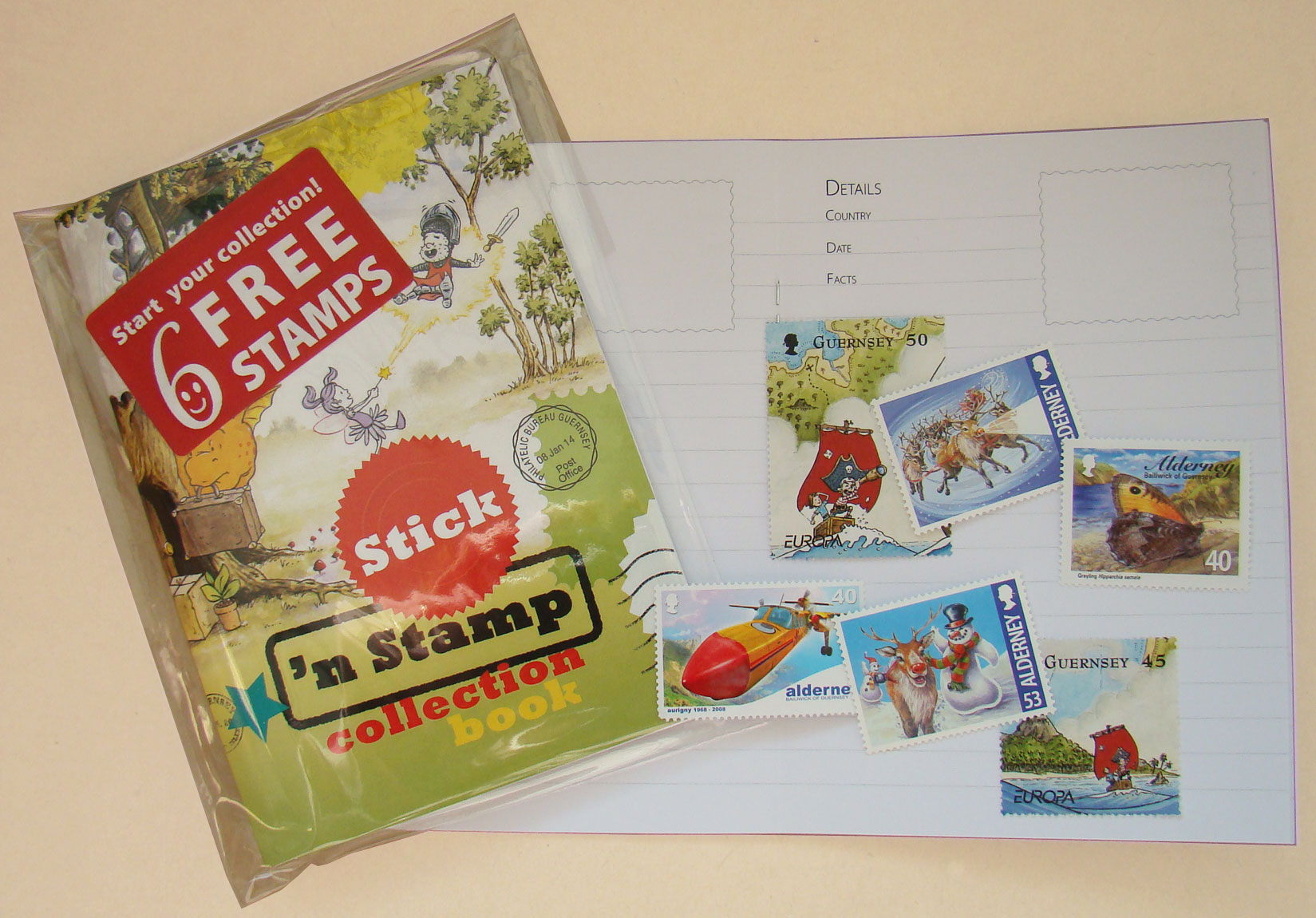 A small A6 notebook which contains 6 free stamps and is aimed at encouraging children to collect stamps.