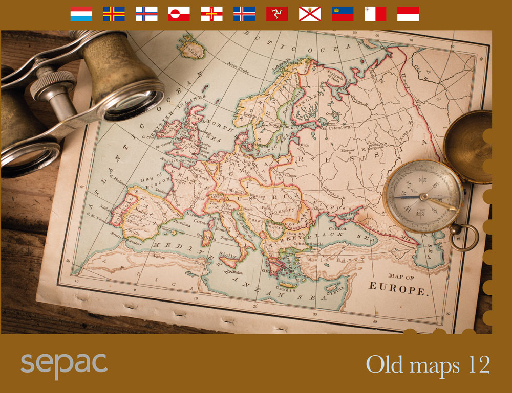 The stamps featured in the twelfth edition of the special folder entitled ‘Old Maps 12’ contain stamps from the participating postal administrations of Åland, Faroe Islands, Gibraltar, Greenland, Guernsey, Iceland, Isle of Man, Jersey, Liechtenstein, Luxembourg, Malta and Monaco. All the stamps bear the official SEPAC logo.