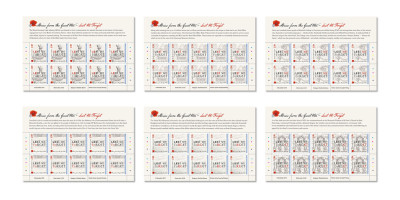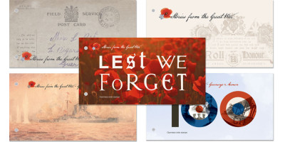 We are delighted to offer our Stories of the Great War limited edition folder. This folder is supplied empty apart from the additional printed miniature copy of the RGLI Colours and a summary card detailing the five issues. The folder will, when completed house the five sets of stamps issued between 2014 and 2018.