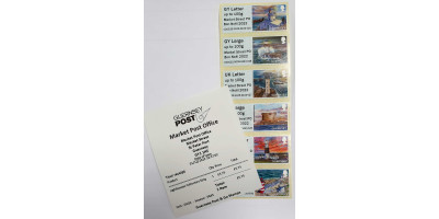 Process Six colour digital printing in coil strips, Value and location identifier printed in thermography within a Royal Mail Series II MACHINE